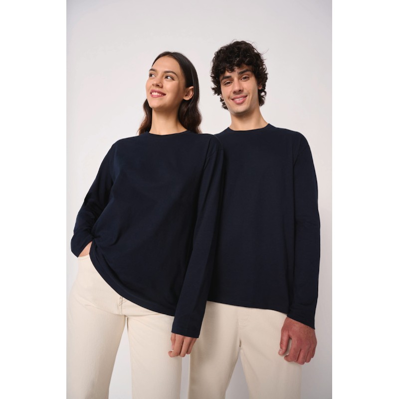 Coloris unis : 100% coton. Coloris Ideal Ash Heather : 99% coton / 1% viscose. Coloris Ideal Oxford Grey : 90% coton / 10% viscose. Maille jersey tubulaire. Coupe droite. Col rond finition bord côte 1x1 avec double surpiqûres. Bande de propreté intérieure col ton sur ton. Ourlets bas de manches et bas de vêtement finition double aiguilles. Etiquette de marque détachable.