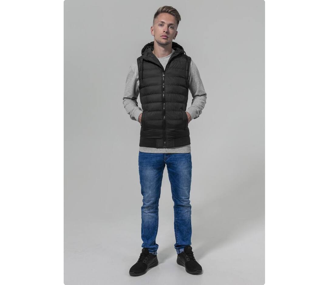 Sans étiquette de marque, uniquement une puce de taille. Impression possible dans le cou. Taille en bords côte. Capuche doublée et ajustable par cordon plat.