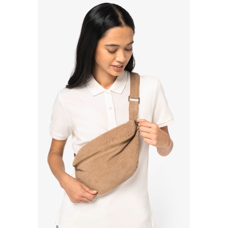 100% coton biologique. Tissu en velours côtelé. Aspect délavé. Sac banane avec anse ajustable en matière principale et boucle de serrage en métal recyclé. Zip d'ouverture en métal recyclé. Produit teint en pièce après montage: les couleurs peuvent varier d'un produit à l'autre. Ce produit est susceptible de déteindre au contact avec des surfaces ou vêtements clairs.