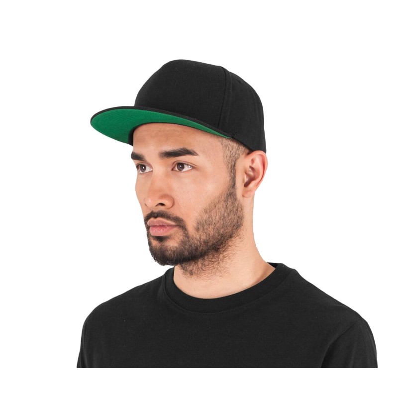 Forme classique | Fermeture pression ton-sur-ton | Buckram rigide | Face inférieure de la visière en vert (Ton-sur-ton à double couleurs: Black/Black)