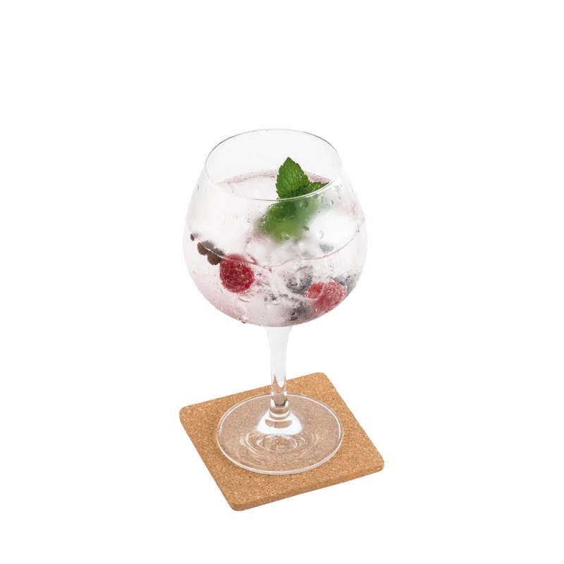 Sous-verres en liège, format carré avec angles arrondis. Le produit étant fabriqué à partir de matériaux naturels, la couleur du produit ainsi que le résultat de l'impression peuvent varier d'un produit à l'autre. 100 x 100 x 5 mm