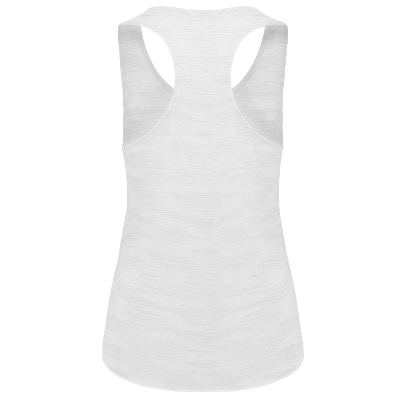 65% polyester / 35% viscose - Maille jersey fluide à effet flammé. Coupe ample. Grandes emmanchures et dos nageur. Encolure ronde avec bande de propreté. Bas légèrement arrondi.