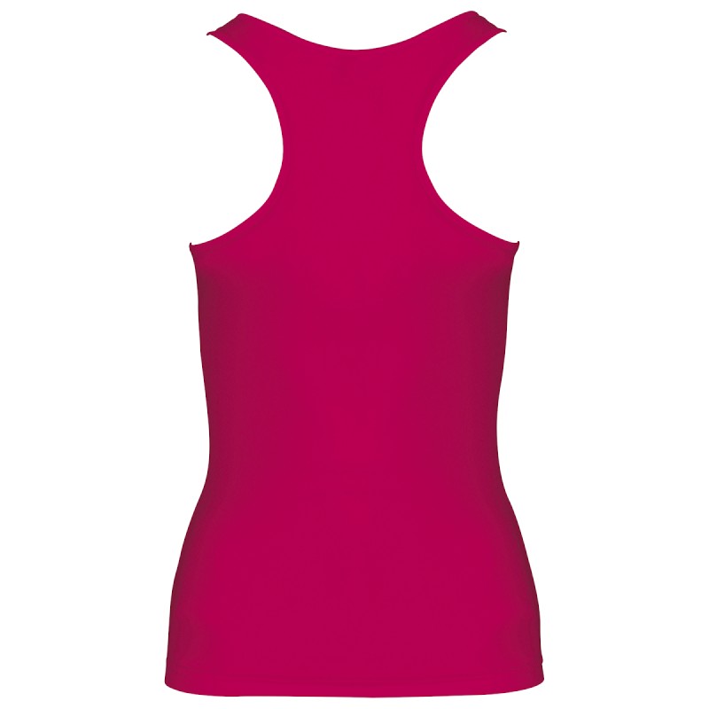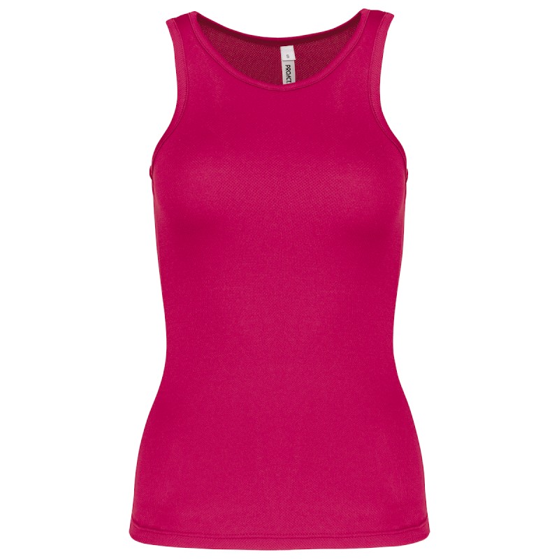 100% polyester. Tissu léger à séchage rapide. Dos nageur. Biais à l'encolure et aux emmanchures. Finition double aiguille au bas du vêtement.