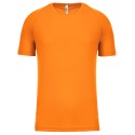 100% polyester. Tissu léger à séchage rapide. Encolure ronde avec bande de propreté. Manches raglan avec points de recouvrement. Finition double aiguille à l'encolure, bas de manche et de vêtement.