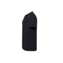Coupe tubulaire. Double surpiqûre au cou, épaules et taille. Col en bord côte avec élasthanne.