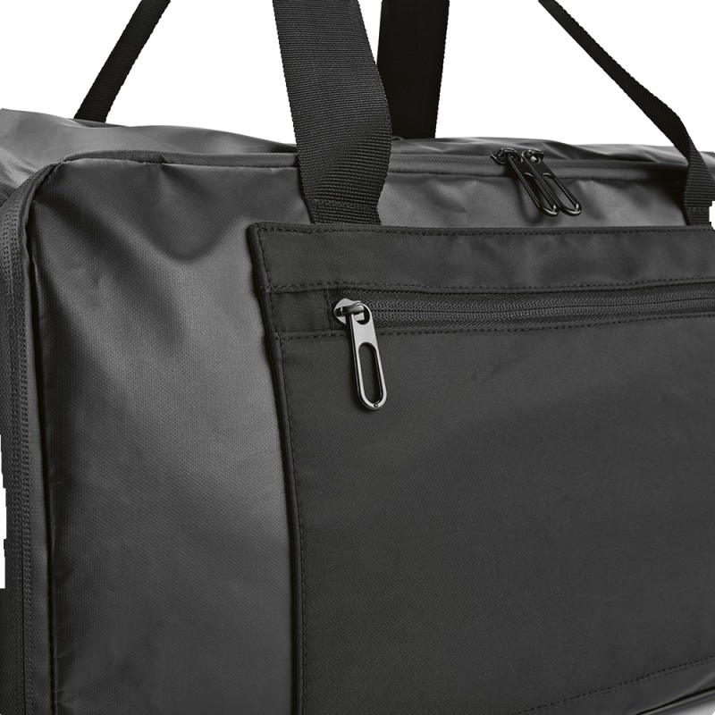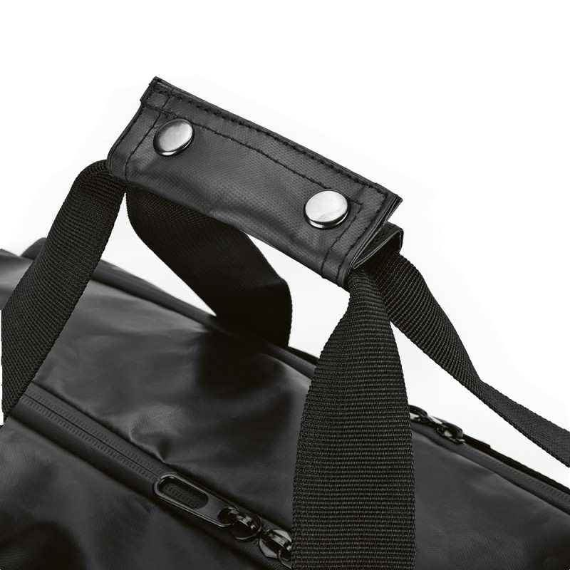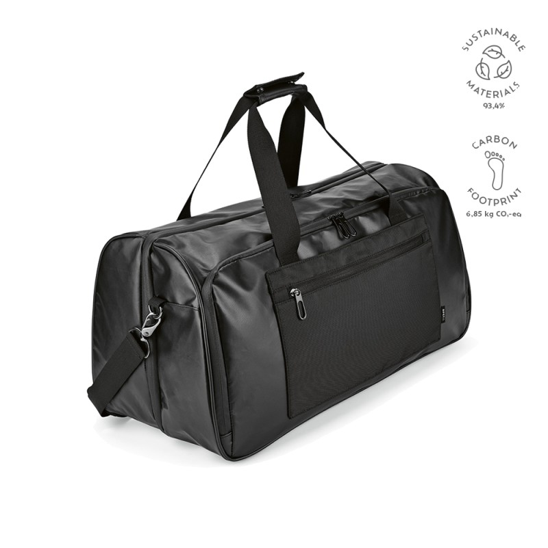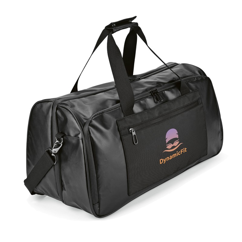 Améliorez votre expérience de la gym avec notre sac de gym en PU recyclé. Sa doublure résistante à l'eau protège votre équipement et est renforcée par des fermetures éclair étanches. Il est également idéal pour les déplacements, grâce à sa poignée trolley. Emballé dans un sac individuel en coton recyclé.