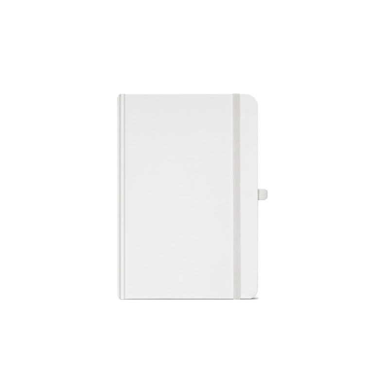 Notre carnet A5 est doté d'une couverture en papier recyclé et de 196 pages ivoires lignées 70gsm. Il est doté d'une couverture rigide robuste, de coins arrondis et d'un ruban marque-page. Il est également doté d'une fermeture élastique, d'une pochette extensible et d'un porte-stylo.