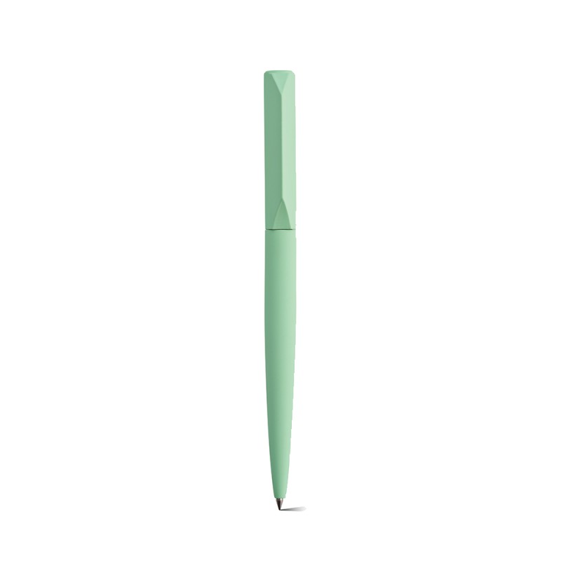 Gage de style, notre stylo se compose d'un corps en aluminium recyclé. Le système de rotation libère de l'encre noire et le design unique de la partie supérieure ajoute un aspect moderne, le tout élégamment présenté dans une boîte individuelle recyclée.