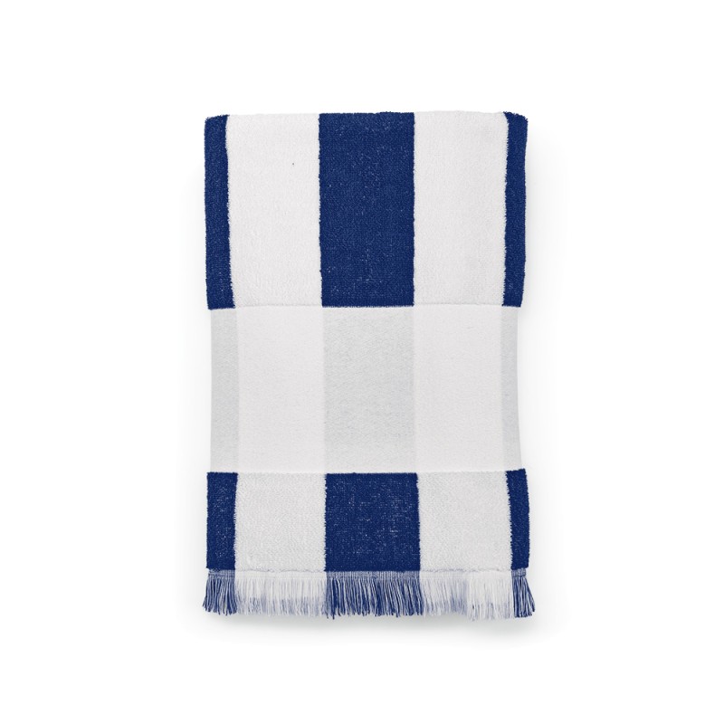 Notre serviette de plage est en coton recyclé 60 % de coton recyclé et 40 % de coton. Avec un grammage de 450 g/m2, elle offre un équilibre parfait entre confort et durabilité. Avec ses dimensions de 80x180 cm et ses rayures verticales, elle est fabriquée au Portugal. Elle est livrée dans un sac biodégradable.