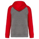 65% polyester / 35% coton. Molleton gratté. Manches raglan et capuche contrastées. Capuche doublée en maille filet ton sur ton. Poches kangourou avec poche téléphone fluorescente. Passe-fil écouteurs. Poignets et bas de vêtement en bord-côte double épaisseur 2 x 2.