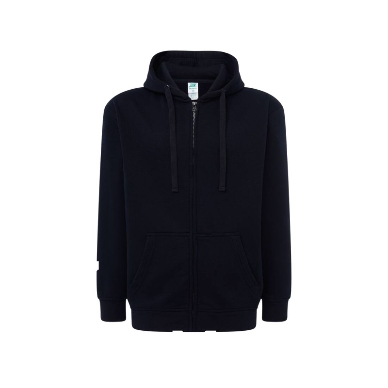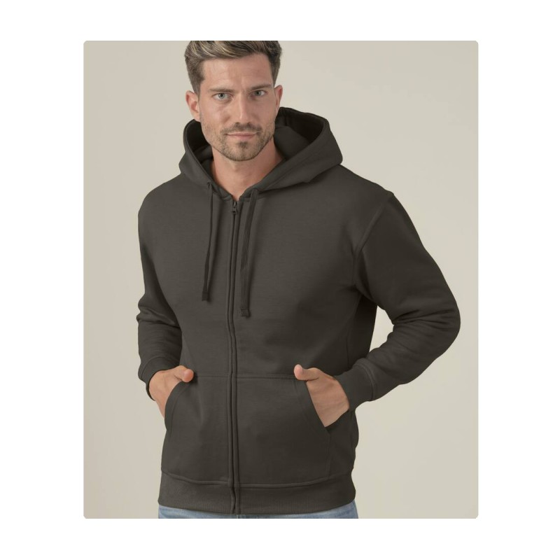 Sweat grand zip à capuche unisexe. Cordon de serrage ton sur ton. Poche kangourou. Stock en conversion vers du 60% coton/40% polyester recyclé. Intérieur gratté.