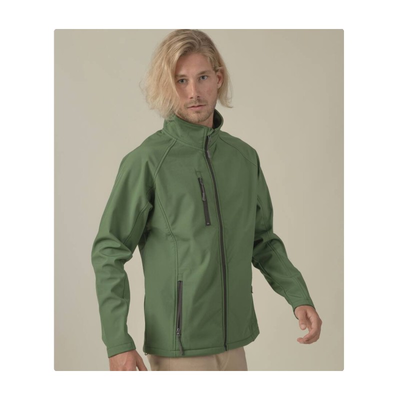 Veste zippée Softshell 3 couches. 2 poches latérales zippées. Poche poitrine zippée. Doublure polaire avec stoppers.
