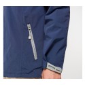 Capuche dans le col avec cordon contrasté. 2 poches zippées latérales. Fermetures Éclair® contrastées.