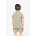 80% coton biologique / 20% polyester recyclé post-consumer. Fabriqué au Portugal. Coton peigné. Matière éponge. Coupe ajustée. Coutures latérales. Lavé aux enzymes. Poche plaquée poitrine. Demi-lune au dos. Col en matière principale. Manches courtes avec finition bas de manches en bord côte 1 x 1 et surpiqûre aux emmanchures. Patte de boutonnage avec 2 boutons en plastique blanc effet nacré. Renfort épaule en matière principale. Ourlet double surpiqûre bas de vêtement. Fentes latérales et encolure avec bande de propreté intérieure en chevrons ton sur ton.