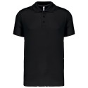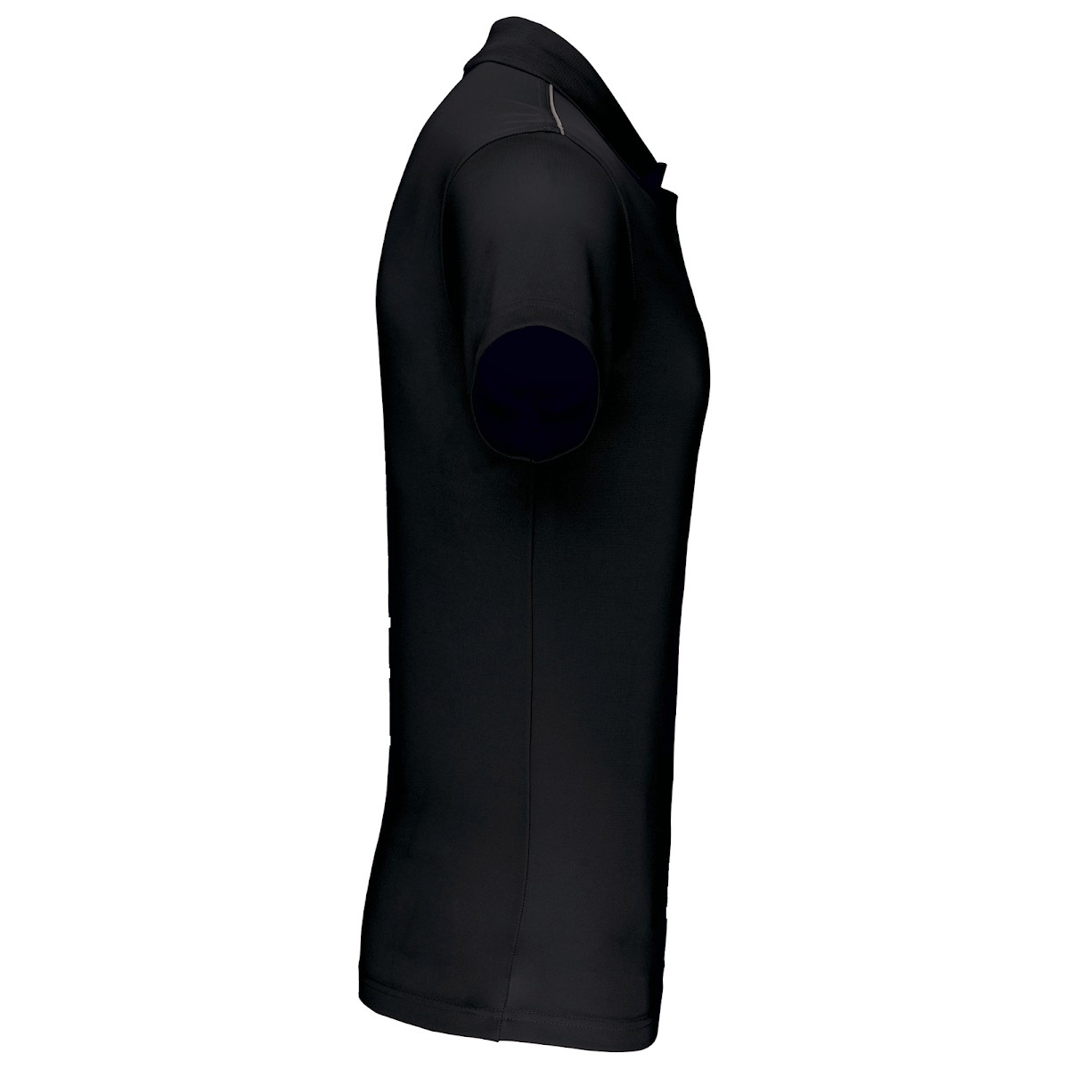 100% polyester interlock. Tissu à séchage rapide. Col en bord-côte. Patte de boutonnage 3 boutons. Bande de propreté contrastée encolure et fentes côtés. Passepoil contrasté épaules. Finition double aiguille bas de manches et bas de vêtement.