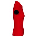 100% polyester. Maille interlock contenant 50% de (polyester) Cool Plus ®. Polo respirant. Patte sans bouton. Finition double aiguille au bas du vêtement et manches.