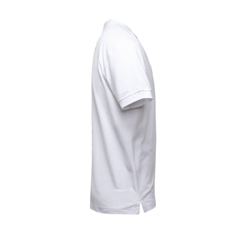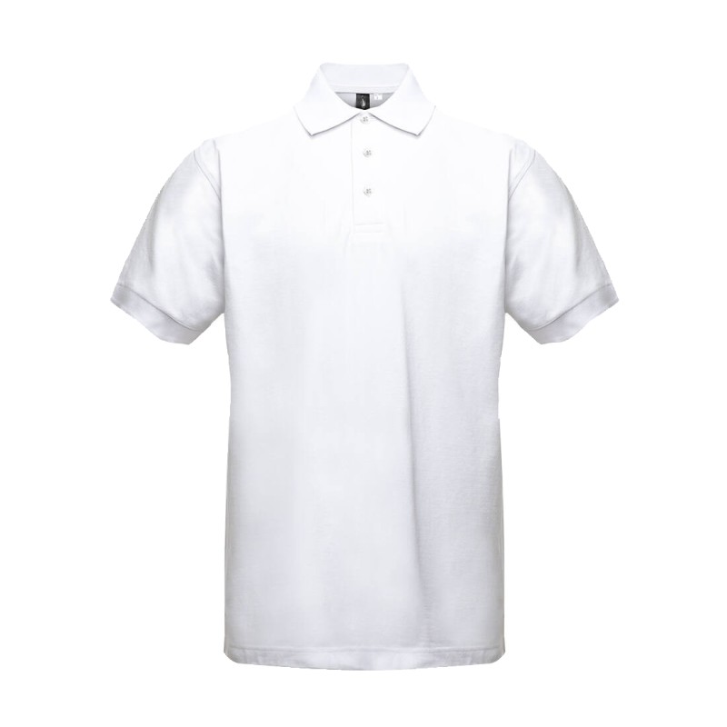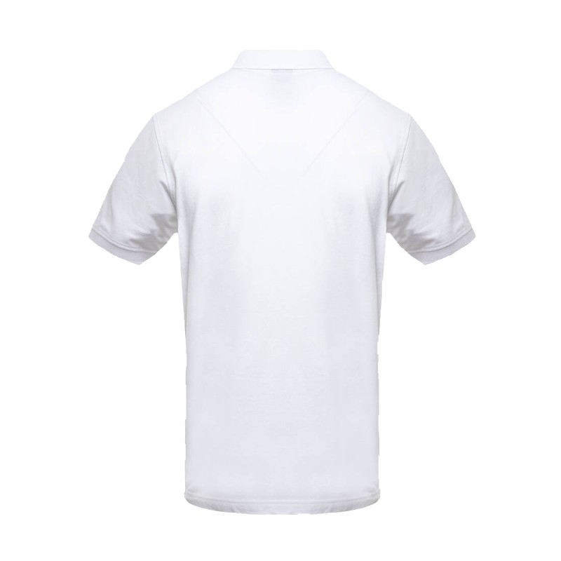 Bande de propreté contrastée au col. Bord côte aux manches et col. Plaquette 3 boutons.