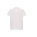 Maille piquée. Plaquette 3 boutons ton sur ton. Bande de propreté de couleur contrastée.