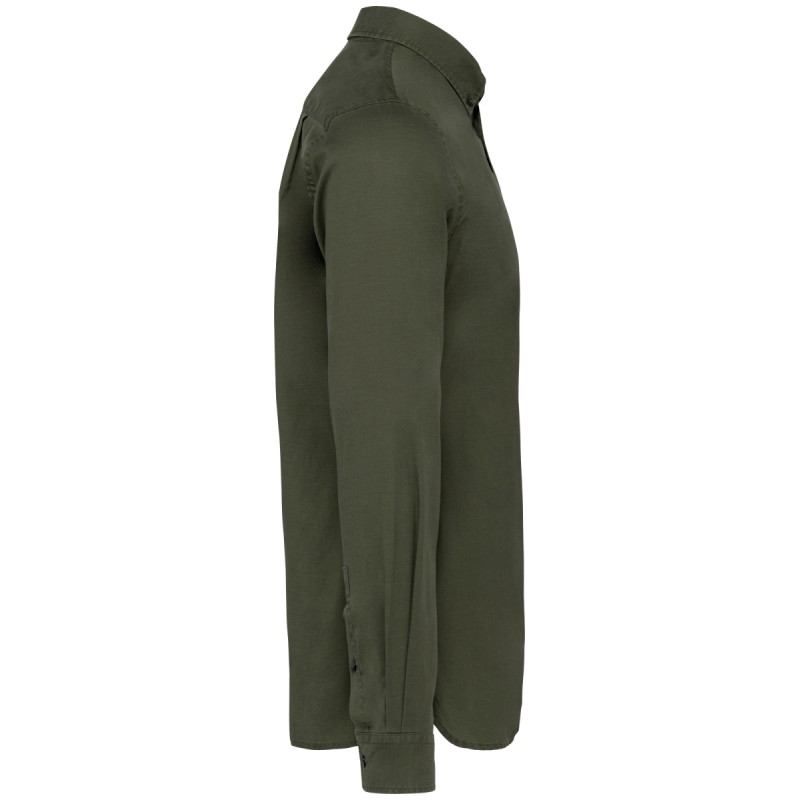 60% Lyocell TENCEL™* / 40% coton biologique. Coupe ajustée. Lavé aux enzymes. Boutons en plastique recyclé ton sur ton. Pointe de col boutonnée. Poche poitrine côté coeur. Patte capucin aux poignets avec boutonnage. Deux plis d’aisance dans le dos avec empiècement. Finitions latérales « hirondelle ». Vêtement lavé après montage : les couleurs peuvent légèrement varier. Ce produit est susceptible de déteindre au contact avec des surfaces ou vêtements clairs. * TENCEL™ est une marque de Lenzing AG.