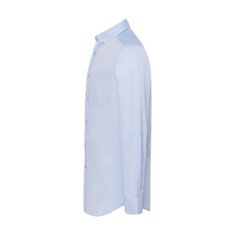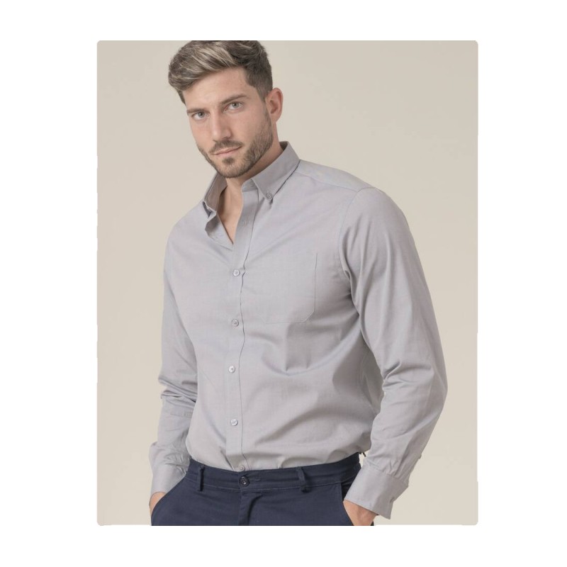 Chemise manches longues. Col boutonné. Poche côté coeur.