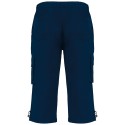 100% polyester. Microfibre toucher peau de pêche. Devant : 2 poches italiennes + 2 poches à soufflet avec rabat sur le côté. Arrière : 2 poches avec fermeture par bande auto-agrippante. Ceinture élastiquée avec bouton et fermeture zippée. Bas de jambes réglable par cordon avec stoppeur.
