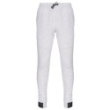 94% polyester/ 6% élasthanne (79% polyester/ 15% viscose/ 6% élasthanne pour coloris chiné). Matière ultra confortable. Ceinture élastiquée avec cordon de serrage bicolore finition embout plastique. 2 poches devant doublure jersey 65% polyester/ 35% viscose et 1 poche arrière zippée finition thermosoudée. Coupe moderne et ajustée avec empiècements genoux. Bas de jambes resserré avec une partie élastiquée contrastée Black sur tous les coloris et Dark Grey sur le Ash Heather.