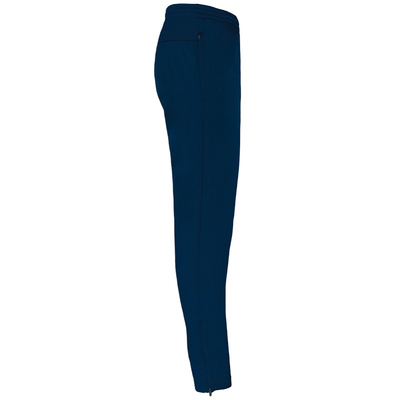 100% polyester tricot. Empiècement dos en mesh pour une meilleure ventilation. 2 poches côtés zippées. Ceinture élastiquée avec cordon de serrage. Bas de jambe zippé. Coupe ajustée moderne.