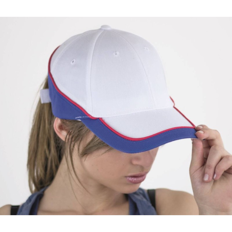 Fermeture par languette Velcro.. 6 PANNEAUX, Cotton, VISOR CURVED, PIPING, FERMETURE PAR VELCRO, BANDEAU: 35% COTON - 65% POLYESTER. Main fabric: 94% polyester - 6% viscose