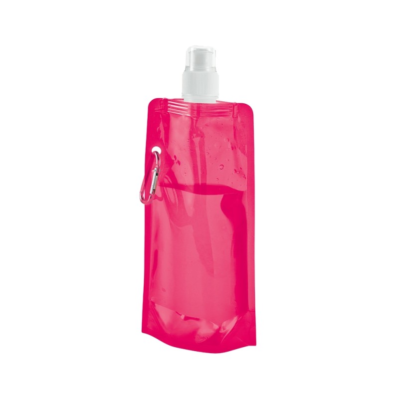 Gourde en PE pliable avec embout buccal push-pull. Contient un couvercle transparent et un mousqueton. Capacité jusqu'à 460 mL. 120 x 265 x 30 mm