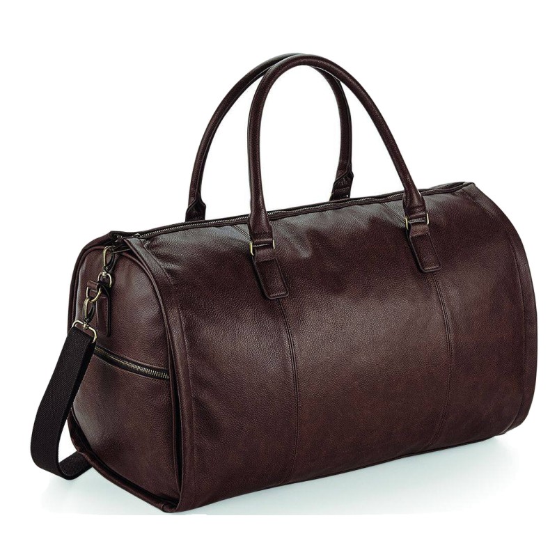 Look imitation simili NuHide® PU | Étiquette détachable pour faciliter le remarquage | Compartiment principal avec fermeture zippée plus longue pour accès plus facile | Compartiment unique pour vêtements | Fermeture éclair de sécurité | Poche secrète externe avec fermeture zippée | Poignées de transport en tissu | Entièrement doublé en tissu rayé | Poche intérieure pour chaussures | Bandoulière ajustable et amovible | Heavy Canvas, peut être porté à la main ou à l'épaule | Peut être entièrement ouvert pour une décoration facile | Se range à plat pour faciliter le rangement | Livraison sans contenu/décoration | Capacité : 37 litres