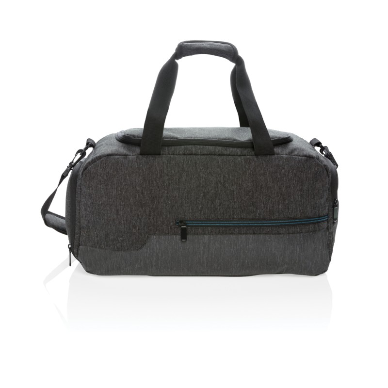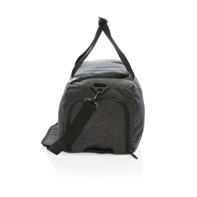 Sac de sport en polyester 900D avec un revêtement résistant à l'eau, parfait pour chaque aventure et chaque séance d'entraînement. Ce sac comporte un grand compartiment principal avec une poche intérieure zippée pour ranger de l'argent liquide ou des objets de valeur, ainsi qu'une poche avec aération pour vos chaussures. Une poche frontale zippée avec rangement pratique pour votre téléphone portable, clés et autres accessoires fréquemment utilisés. Sans PVC.