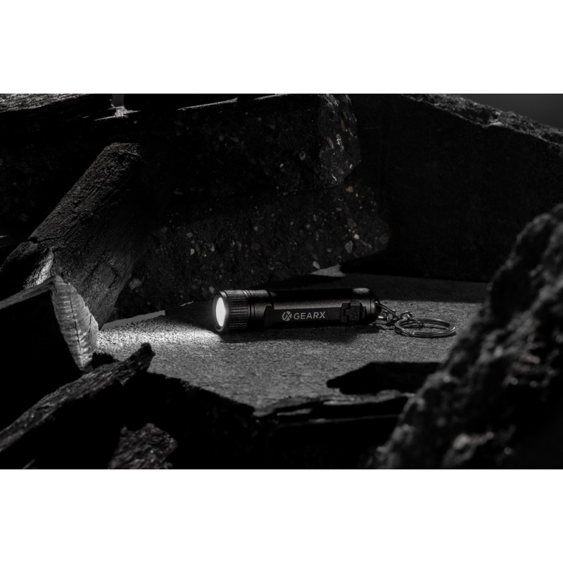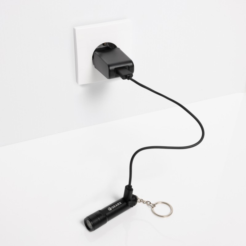 Torche de poche ultra lumineuse fabriquée avec de l'aluminium recyclé RCS Contenu total recyclé : 58% sur la base du poids total de l'article. La certification RCS garantit une chaîne d'approvisionnement entièrement certifiée pour les matériaux recyclés. La torche est équipée d'une LED XTE super lumineuse de 120 lumens qui crée un faisceau jusqu'à 30 mètres. La torche est équipée d'une batterie au lithium de grade A de 200 mAh qui offre une autonomie d'une heure avec un rechargement rapide via l'USB-C en moins d'une heure. La torche est étanche IPX 4 et peut donc être utilisée par mauvais temps. La torche offre 3 modes : 100%/50% et clignotant. Emballée dans une boîte cadeau FSC sans plastique. Câble de recharge USB C en TPE recyclé inclus.