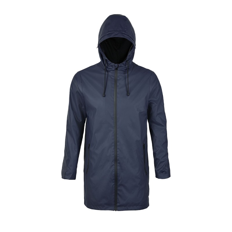 Ouverture par zip étanche Capuche et cordon de serrage 2 poches fermeture zip étanche Dos finition queue de pie Coutures thermosoudées