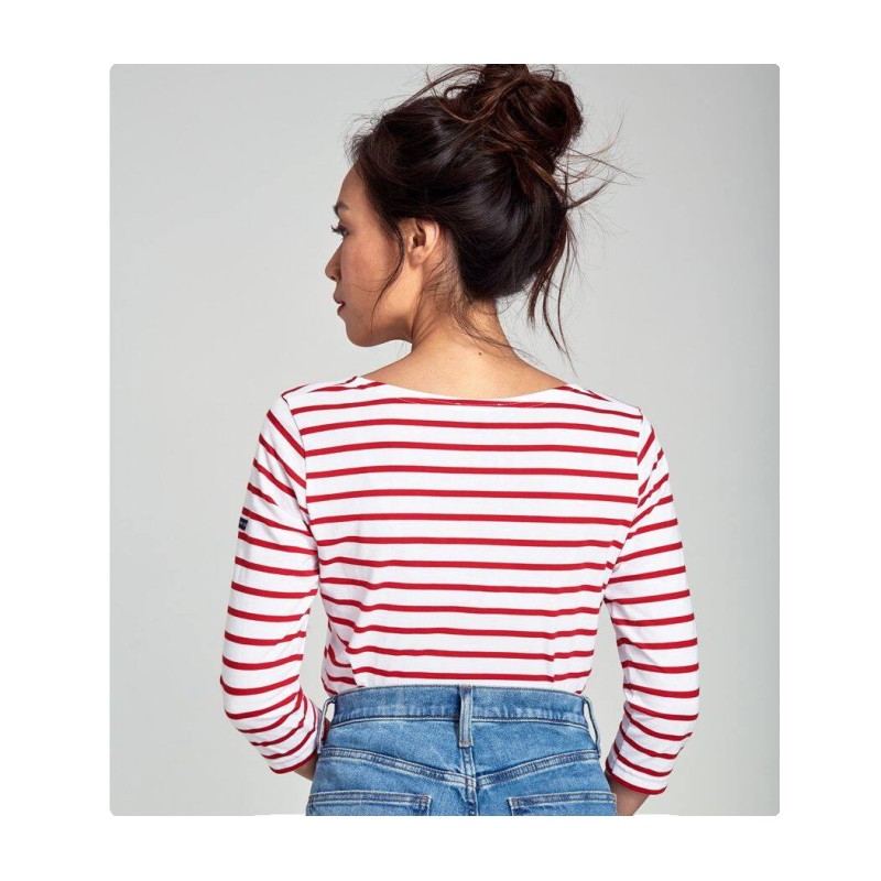Marinière col bateau, manches 3/4. Mention Armor Lux en bas à gauche.