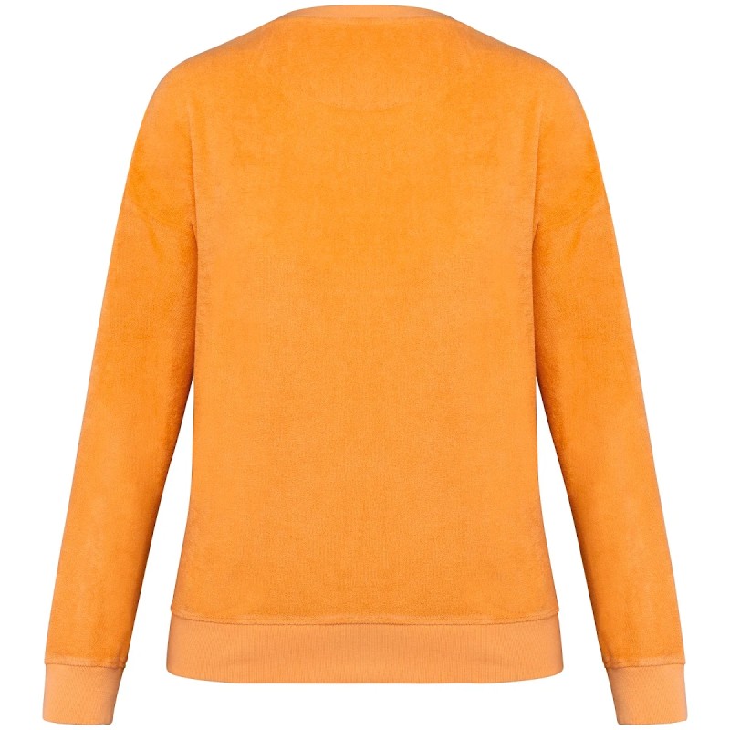 80% coton biologique / 20% polyester recyclé post-consumer. Fabriqué au Portugal. Coton peigné. Coutures latérales. Matière éponge. Lavé aux enzymes. Coupe confort avec épaules tombantes. Finition encolure avec bande de propreté en chevrons ton sur ton. Bord côte 1x1 en finition bas de vêtement et bas de manches. Demi-lune au dos.