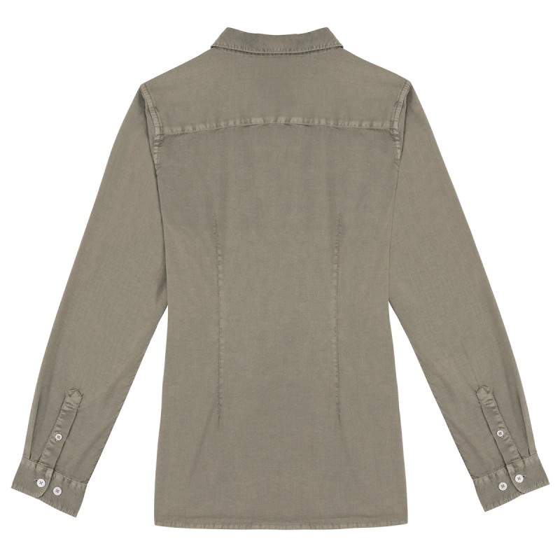 100% coton biologique. Coton peigné. Coupe ajustée. Patte de boutonnage classique avec boutons effet nacré. Empiècement dos « pli rond » décontracté. Patte de manche en pointe « capucin » boutonnée.