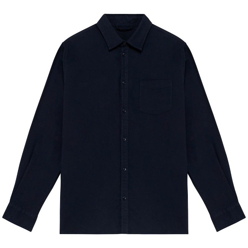 100% coton biologique. Coton twill. Coupe droite. Tissu brossé sur l’extérieur. Boutons en plastique recyclé ton sur ton. Col avec pied de col. Poche poitrine plaquée côté coeur. Bas de manches avec poignet et capucin avec boutons. Pli rond au dos. Patte de boutonnage rapportée.