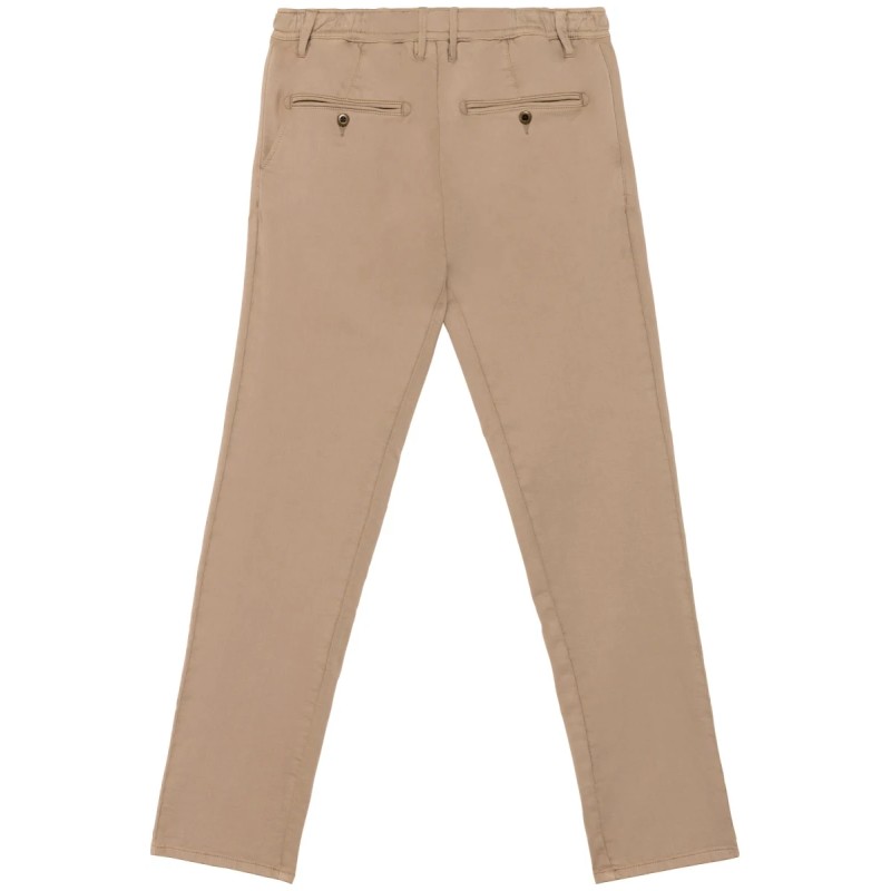 74% coton biologique / 25% coton conventionnel / 1% élasthanne. Matière stretch. Vêtement tissé avec effet intérieur French Terry. Finition toucher peau de pêche. Braguette patte de boutonnage, boutons en métal. Deux poches côtés. Ceinture demi élastiquée sur les côtés avec passants. Deux poches passepoilées au dos avec boutons en métal et coins renforcés. Deux cordons plats de serrage intérieur. Vêtement teint en pièce après montage : les couleurs peuvent varier d’un produit à un autre. Ce produit est susceptible de déteindre au contact avec des surfaces ou vêtements clairs.