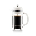 Cafetière à piston avec récipient en verre borosilicaté de haute qualité. Le verre est résistant à la chaleur et n'altère pas la saveur naturelle du café. Le piston intégré en acier inoxydable empêche les grains de tomber de la cafetière pendant que le café est servi. Le cadre et le couvercle chromés ont une finition brillante durable et attrayante tandis que la poignée mate en PP offre une prise en main confortable qui accentue la qualité du design. Le système French press est apprécié des amateurs de café du monde entier pour sa simplicité de préparation et la puretée de sa saveur. La cafetière Chambord a un design intemporel et est fabriquée avec le savoir-faire supérieur que ses adeptes attendent. Elle a une capacité allant jusqu'à 1 L. Livré dans une boîte cadeau. 141 x 230 x 107 mm