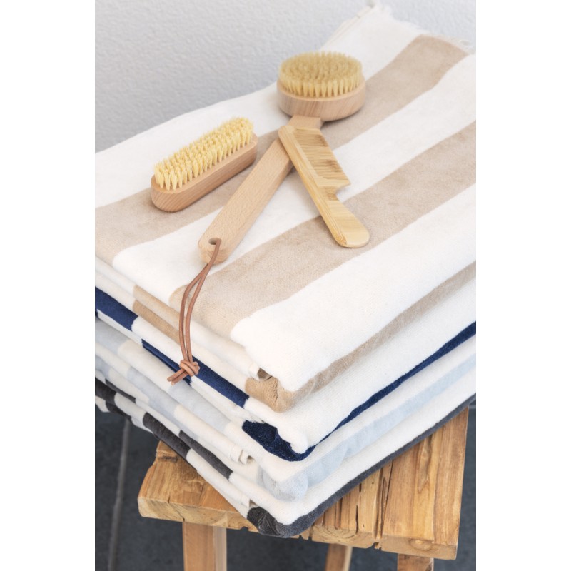 Serviette de bain parfaite pour la plage. Sa texture douce et absorbante offre un confort ultime tout en minimisant votre impact environnemental. Fabriquée à partir de 50 % de coton recyclé. Avec le traceur AWARE™ qui valide l'utilisation authentique de coton recyclé. 2 % des recettes de chaque produit Impact vendu seront reversés à Water.org. Lavable en machine. Fabriqué au Portugal. Taille 180x100cm.