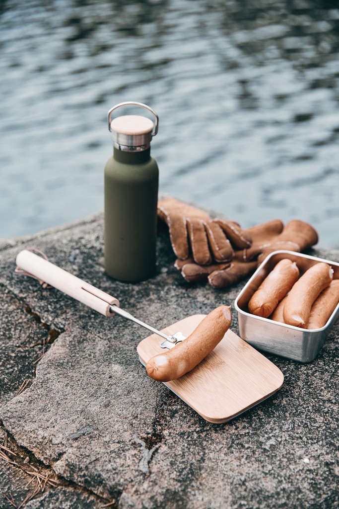 Bâton de gril parfait pour une utilisation sur un feu ouvert. Le bâton de gril peut être prolongé au moyen d'une poignée télescopique. Fourchette barbelée et manche en bois. Les barbelés de la fourchette sont conçues de manière à ce que ce que vous faites griller soit fermement attaché au bâton, empêchant ainsi la nourriture de pénétrer dans le gril ou le feu. Cordon en cuir pratique pour le suspendre. Longueur étirée : environ 70 cm.