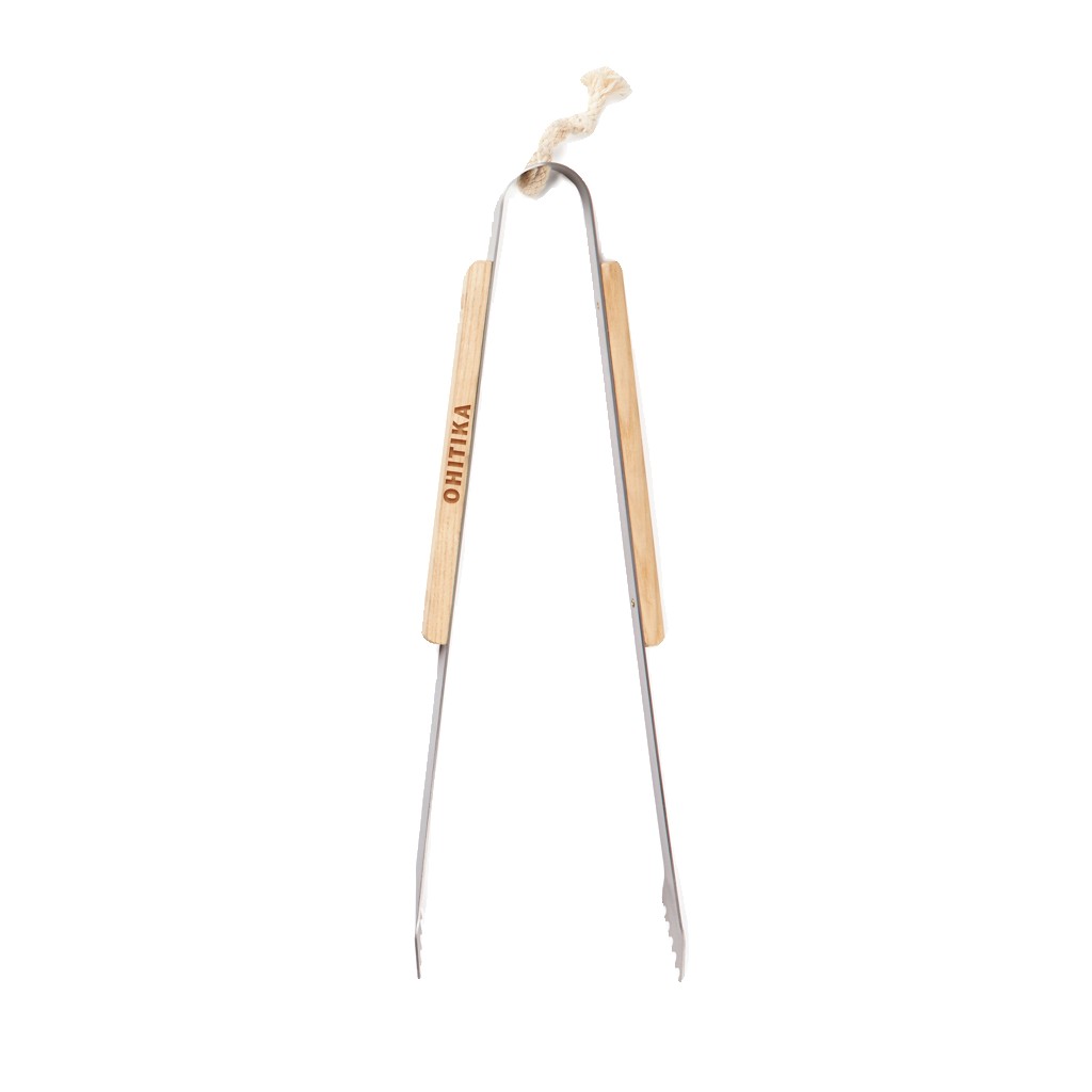 Une pince solide en acier inoxydable. Parfaite pour le barbecue et la cuisine. Manche en frêne.