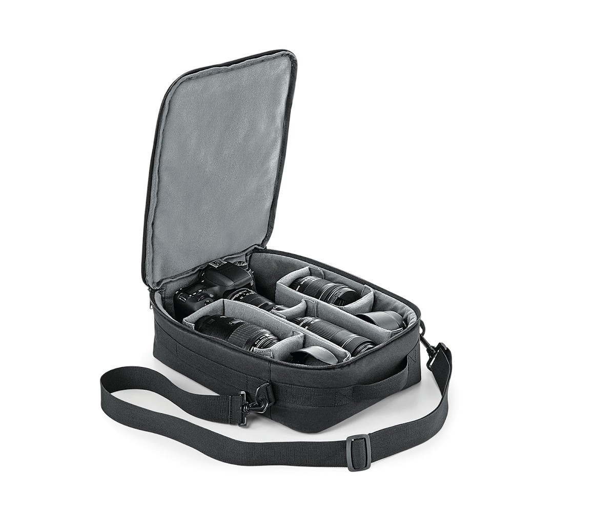 Polyester 300D | Étiquette détachable | Composition: mousse protectrice | Compartiment principal à fermeture éclair | Système de cloison intérieure flexible et rembourrée | Poche arrière zippée | Doublure polyester brossée | Peut être utilisé indépendamment ou en tant qu'insert de sachet | Compact et léger | Bandoulière ajustable et amovible | Poignée | Livraison sans contenu/décoration | Capacité : 7,5 litres